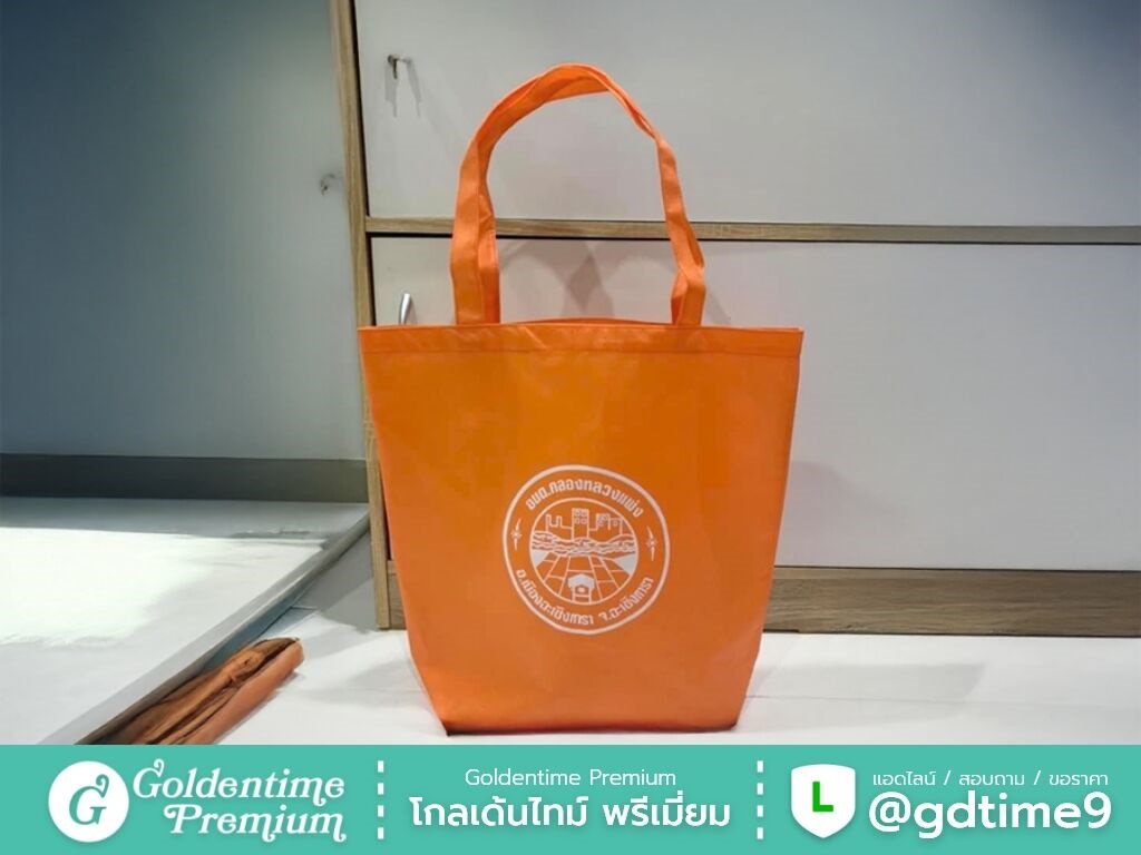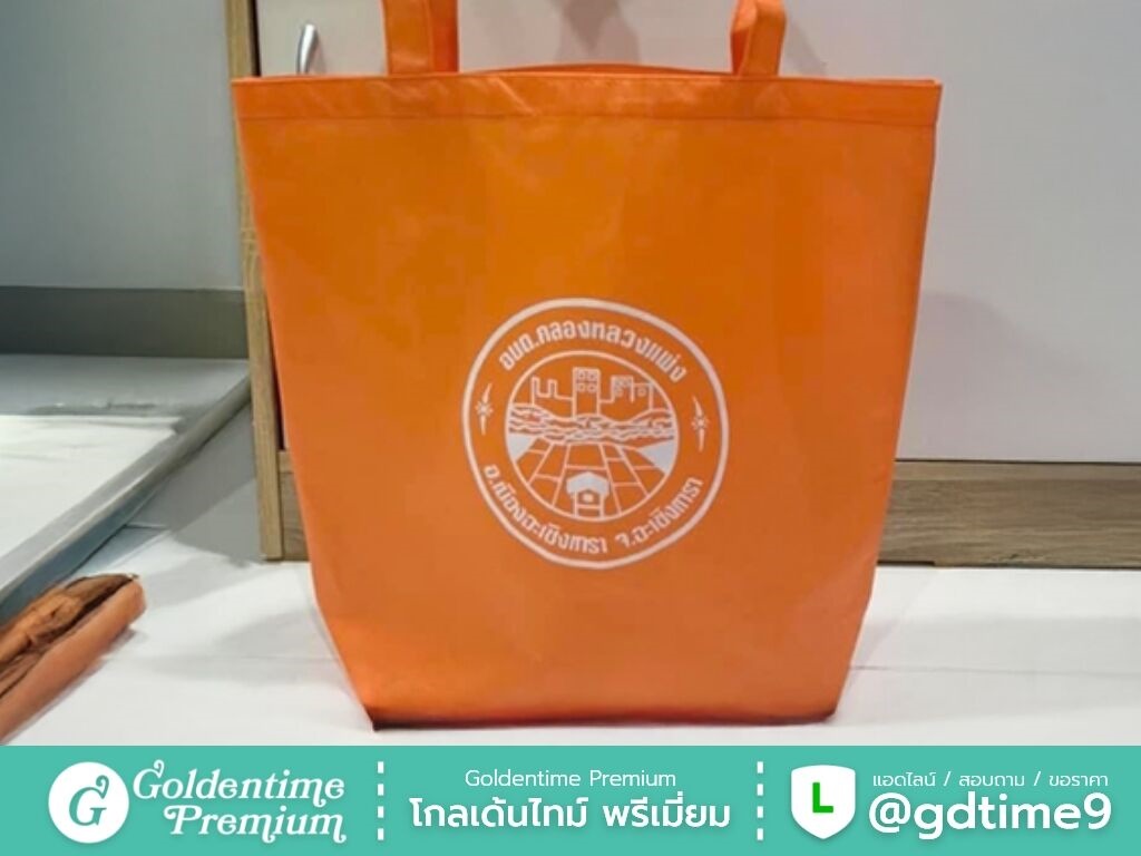 สั่งผลิตกระเป๋าผ้าสปันบอนด์โดยตรงจากโรงงาน โกลเด้นไทม์ พรีเมี่ยม ควบคุมคุณภาพทุกขั้นตอน ได้งานตรงแบบ ราคาคุ้มค่า พร้อมให้คำปรึกษาและเสนอราคา