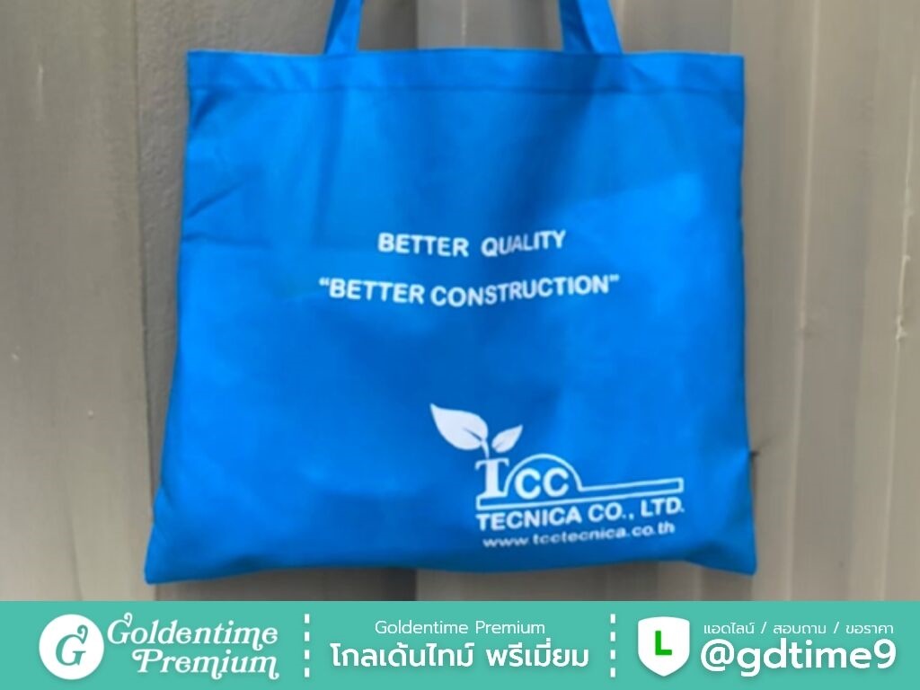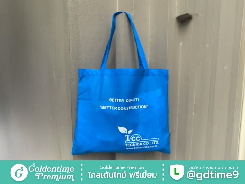 สั่งผลิตกระเป๋าผ้าสปันบอนด์โดยตรงจากโรงงาน โกลเด้นไทม์ พรีเมี่ยม ควบคุมคุณภาพทุกขั้นตอน ได้งานตรงแบบ ราคาคุ้มค่า พร้อมให้คำปรึกษาและเสนอราคา