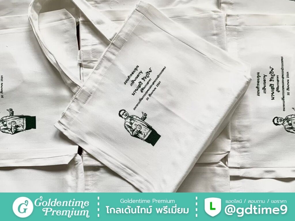 สั่งผลิตกระเป๋าผ้าดิบโดยตรงจากโรงงาน โกลเด้นไทม์ พรีเมี่ยม ควบคุมคุณภาพทุกขั้นตอน ได้งานตรงแบบ ราคาคุ้มค่า พร้อมให้คำปรึกษาและเสนอราคา