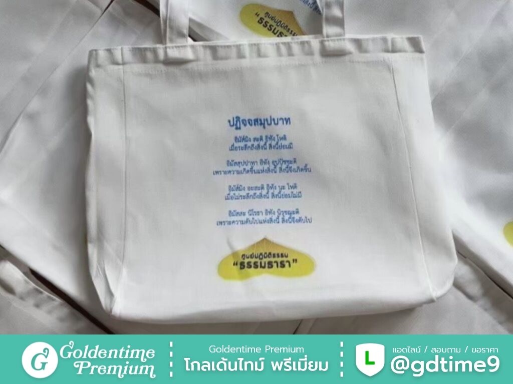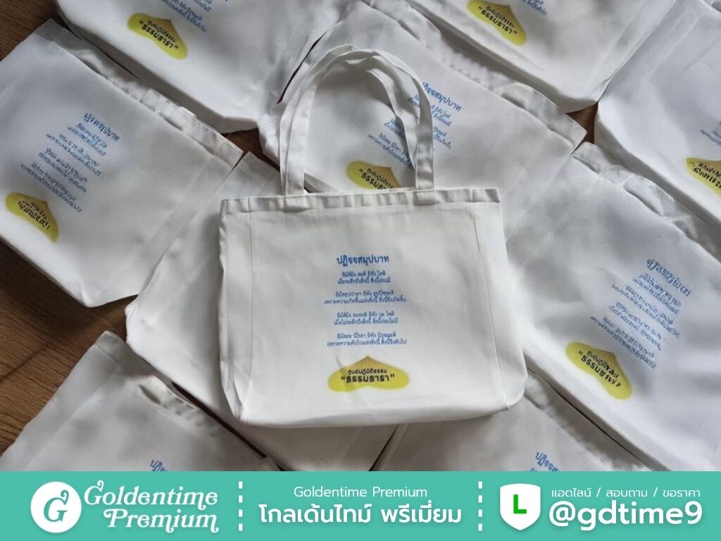 สั่งผลิตกระเป๋าผ้าดิบโดยตรงจากโรงงาน โกลเด้นไทม์ พรีเมี่ยม ควบคุมคุณภาพทุกขั้นตอน ได้งานตรงแบบ ราคาคุ้มค่า พร้อมให้คำปรึกษาและเสนอราคา
