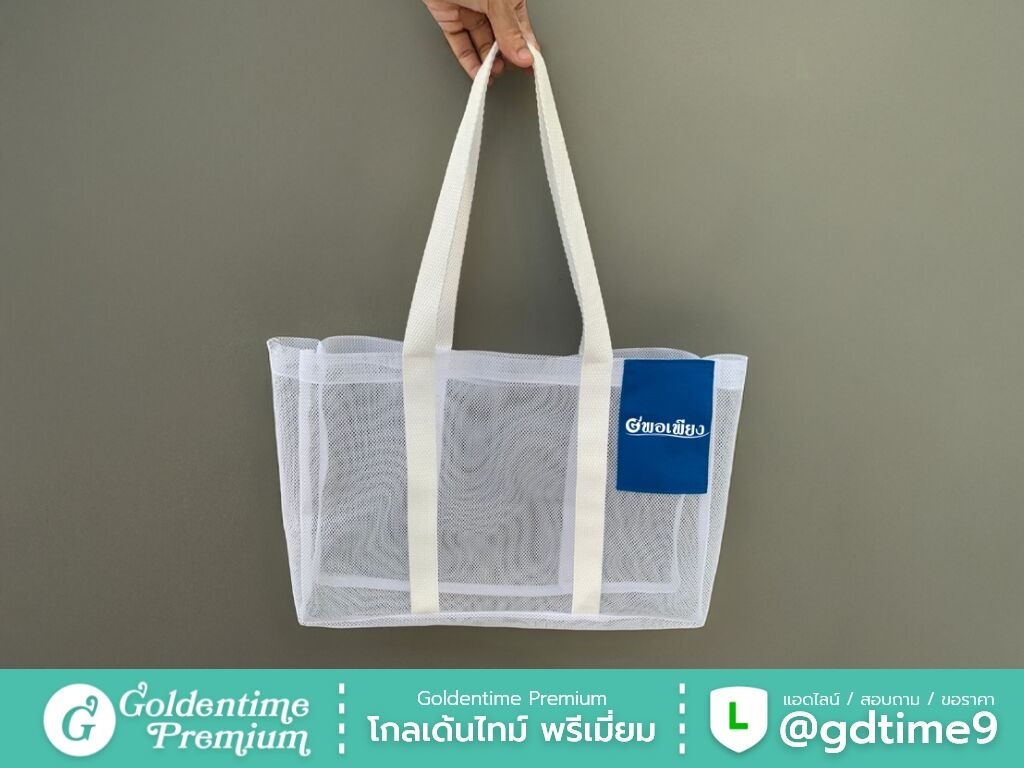 สั่งผลิตกระเป๋าผ้าตาข่ายโดยตรงจากโรงงาน โกลเด้นไทม์ พรีเมี่ยม ควบคุมคุณภาพทุกขั้นตอน ได้งานตรงแบบ ราคาคุ้มค่า พร้อมให้คำปรึกษาและเสนอราคา