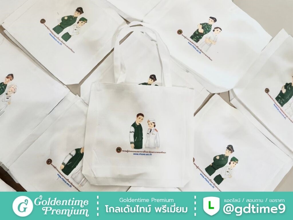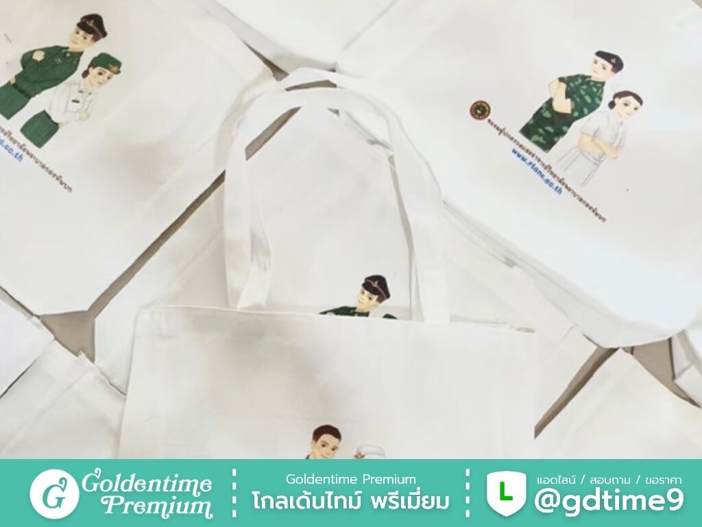 สั่งผลิตกระเป๋าผ้าดิบโดยตรงจากโรงงาน โกลเด้นไทม์ พรีเมี่ยม ควบคุมคุณภาพทุกขั้นตอน ได้งานตรงแบบ ราคาคุ้มค่า พร้อมให้คำปรึกษาและเสนอราคา